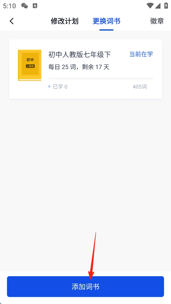 点击屏幕上方的“更换词书”。