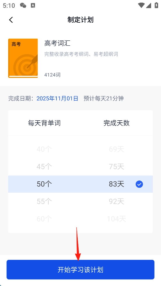 调整自己的计划后,点击下方的“开始学习该计划”。