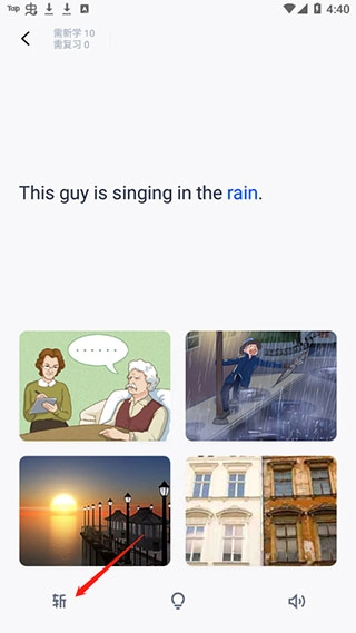 在软件里学习单词时,要是记住了当前单词,就点击左下方的“斩”按钮,这样就能切换到下一个单词继续学习啦。