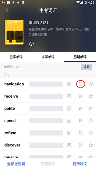 要是不小心忘记了之前斩掉的单词,可以前往单词页的单词列表里,在已斩单词板块中进行撤销操作。