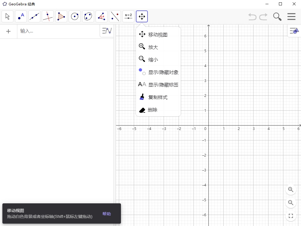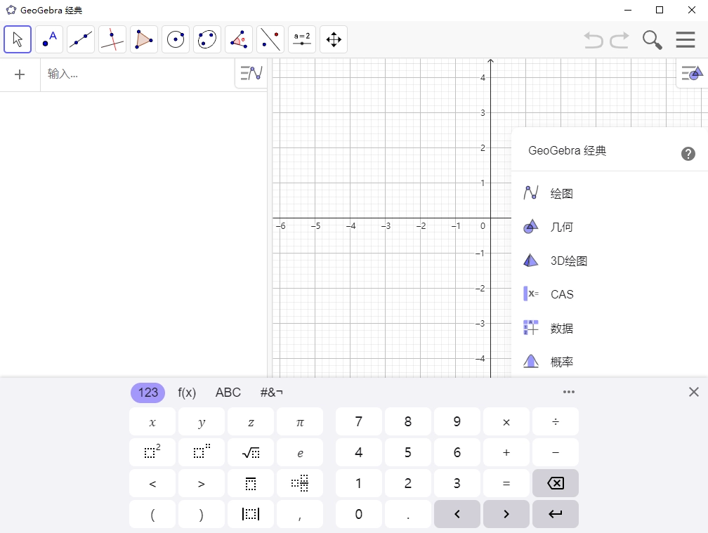 点击选择几何选项后,我们便进入了平面几何界面,接下来我们会在此顺带探讨一下GeoGebra的绘图原理。