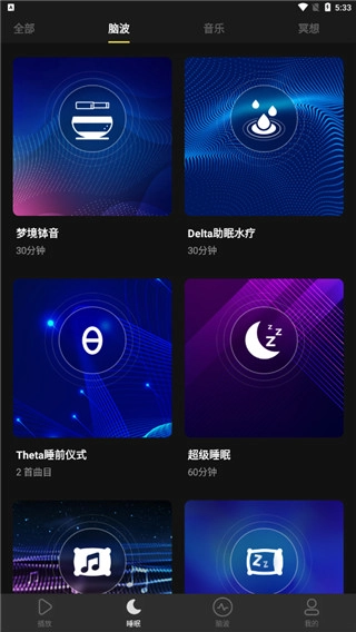 进入软件后,首页呈现了丰富多样的脑波音乐推荐,用户能够根据自身喜好来挑选。