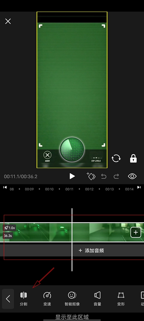 把时间线切割线移到要截取的视频片段的开始处,点击“分割”;接着把它移到片段的结尾处,再次点击“分割”。