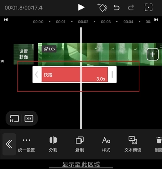 你可以拖动视频下方的区域,以此来设定文字内容在视频里的显示时长。