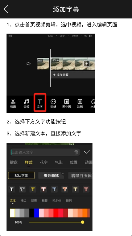 选择文字样式,输入我们想要添加的视频内容。