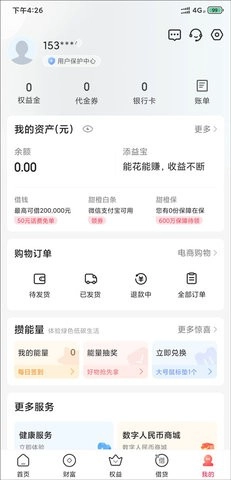 打开翼支付应用,进入主界面后,点击页面右下角的“我的”选项,即可进入个人中心页面。