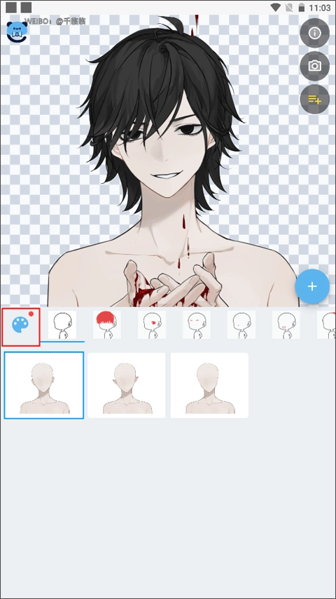 右侧栏对应各个部位,点击展开可进一步操作。