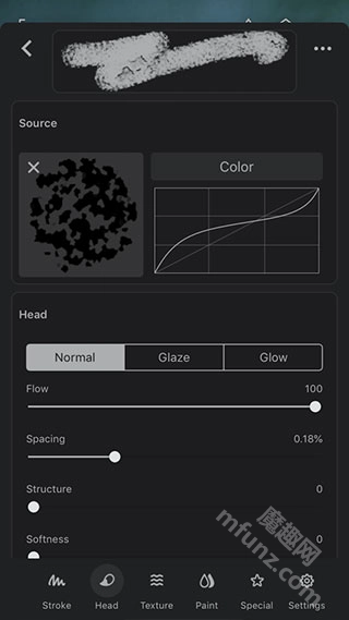 Infinite Painter提供了上百种模拟真实质感的画笔,像铅笔、炭笔、水彩笔之类,每一种画笔都配备了硬度、透明度、纹理等细致的参数调节选项,能够适配不同绘画风格的创作需求。