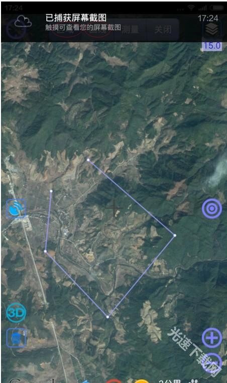 您可以点击下方的标点选项,接着在地图上对需要测量的地点进行标点,系统就会自动计算出该区域的面积大小。