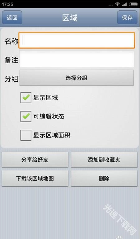 完成后,就回到了“区域”页面,给这次的区域起好名字,就能保存了!首先,“区域”功能在离线状态下可以让我们清晰地使用地图。