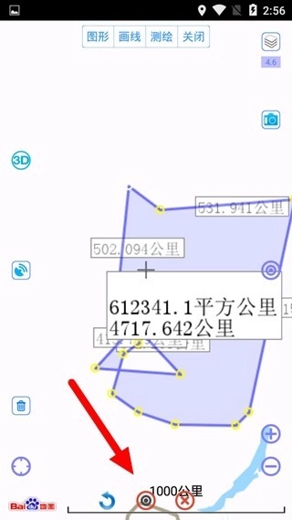 现在界面上显示了“区域”和“画线”两个功能选项,这一步我们先选择“区域”功能来操作。你可以直接用手在图上点击来绘制区域,也可以借助屏幕上的按钮,配合“十”字坐标来完成绘制。