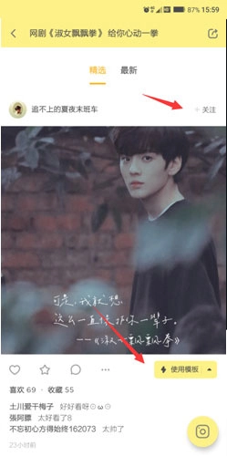 接下来选择使用该模板即可。要是你希望持续关注这个模板的作者,点击右上角的关注按钮就行。