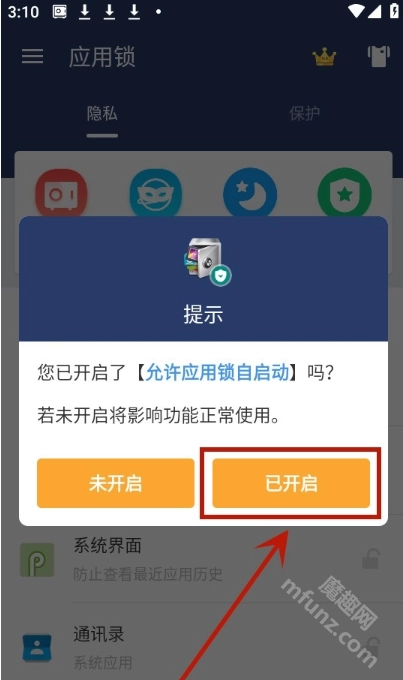 当弹出权限请求对话框时,请点击“允许”按钮,以此授予应用锁功能所需的权限。