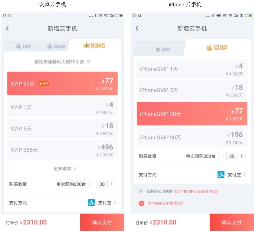 请先选择支付方式,同时阅读《红手指VIP会员服务协议》或《iPhone云手机协议》,之后点击“确认支付”按钮并完成支付操作。