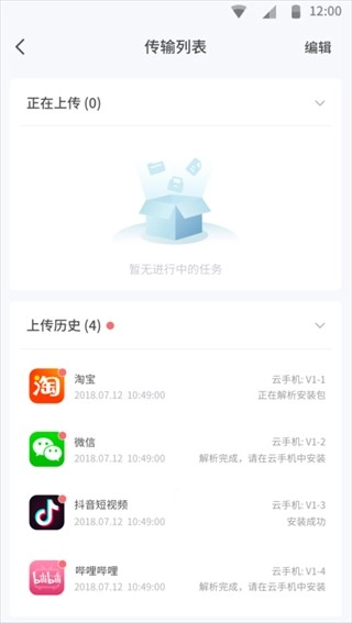 文件上传成功后,云手机会自动解析安装包,并对上传的应用或文件完成自动安装。
