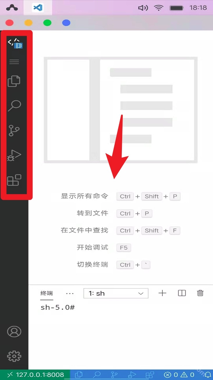AidCode代码编辑器的左侧工具栏具备文件管理、搜索等功能,下方的终端则能够执行命令。