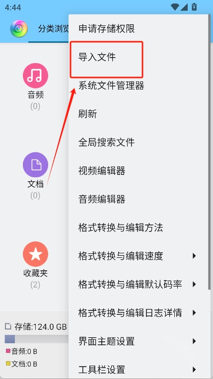 在这些功能中选择“导入文件”