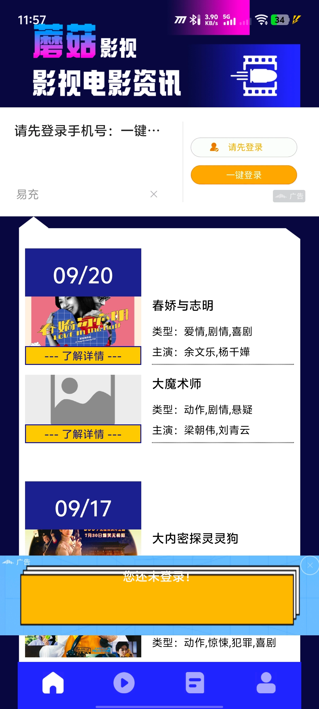 首先需要在手机上安装蘑菇视频并打开它。