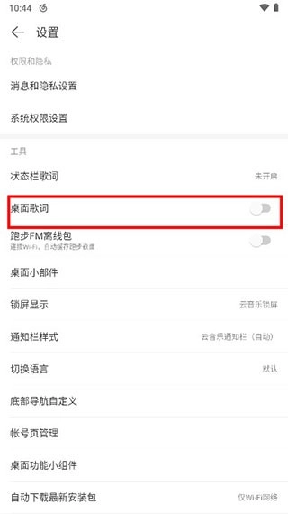 然后在设置页面里中找到桌面歌词选项