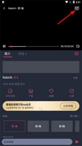 在动漫播放过程中,轻点屏幕中央,接着点击右上角的投屏图标。