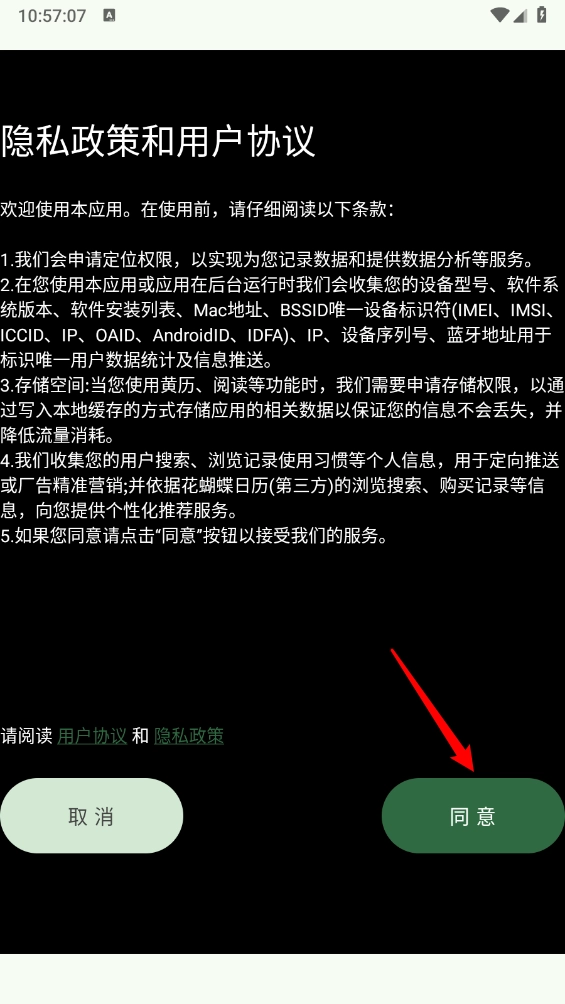 用户在安装软件,同意相关权限和隐私政策。