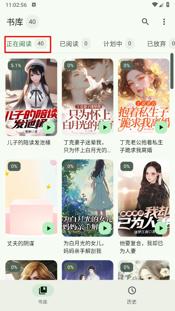 进入书库板块,滑动选择喜欢的小说资源。