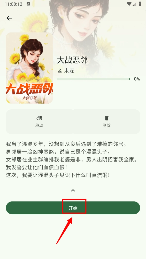 一键打开进入小说详情页,点击"开始"。
