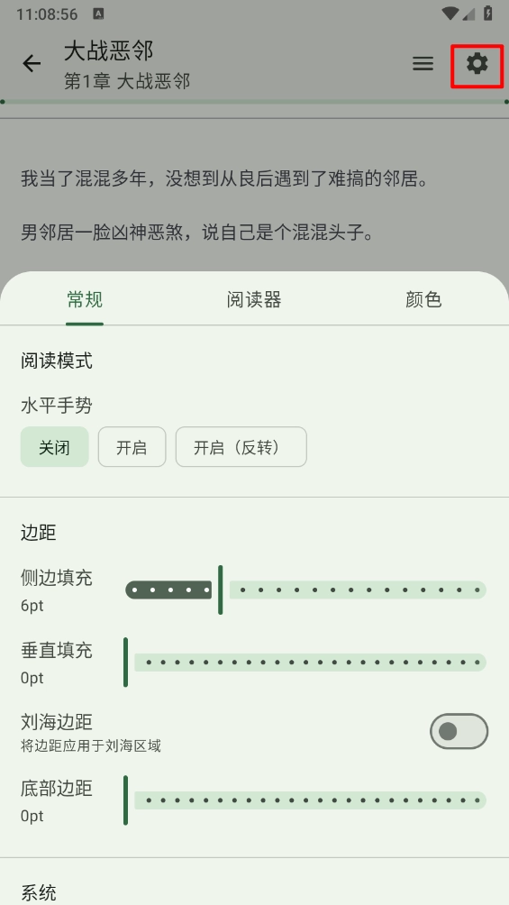 在相应位置调出顶部与底部栏,接着点击右上角的齿轮图标,这样就能看到所有阅读器设置。另一种方法是进入设置界面,选择“阅读器”类别可自定义常规设置,选择“外观”类别则能自定义颜色设置。