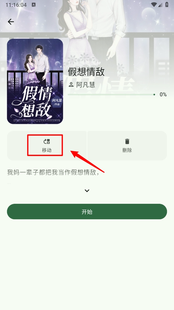 进入小说详情页点击"移动",如图。