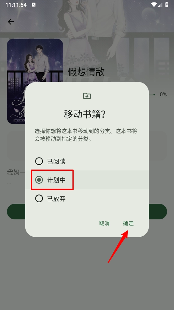 然后选择"计划中",点击"确定"即可。