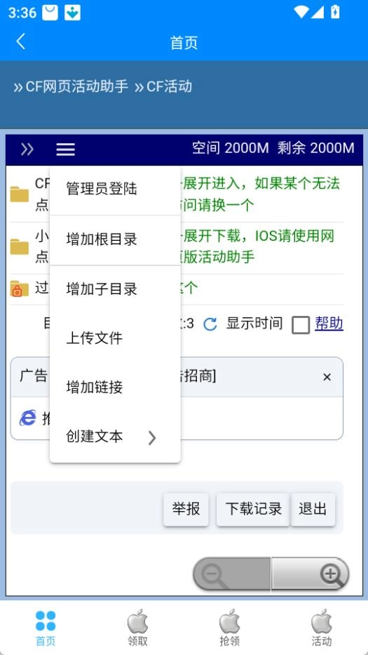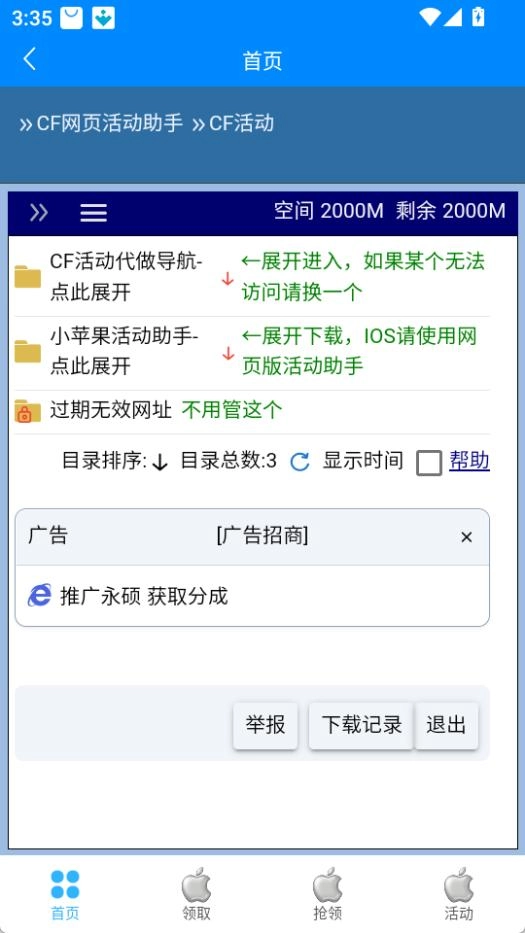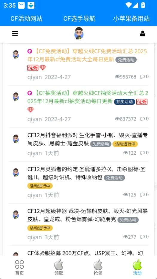 打开cf小苹果活动助手,点击底部的领取按钮,进入领取界面。