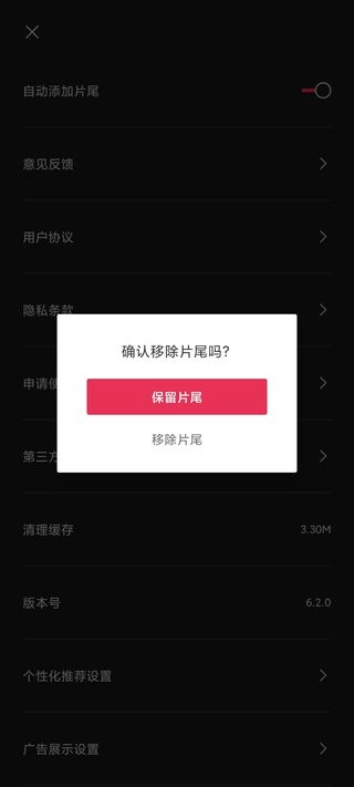 将“自动添加片尾”右侧的按钮关闭。