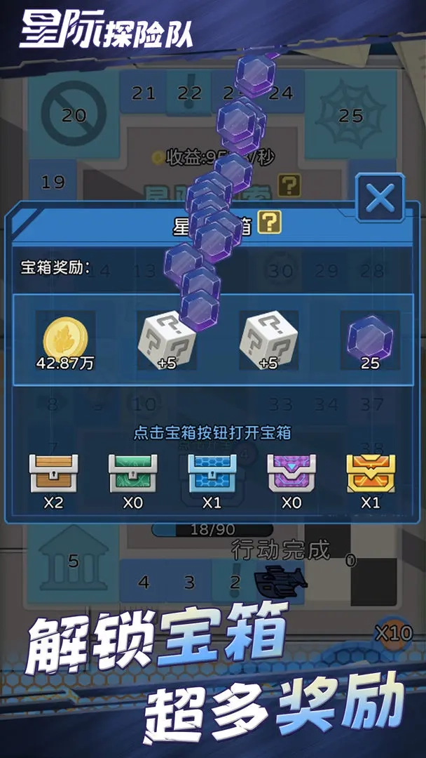 星际探险队是一款以宇宙探险为主题的单机养成放置游戏。在游戏里,玩家能够招募各类探险队员,并提升他们的战斗力。通过持续的探险,玩家可以获取多种强力装备与珍贵财宝。此外,玩家还拥有专属的飞船船舱,能借助探索与航行去发掘形形色色的远古宝藏!