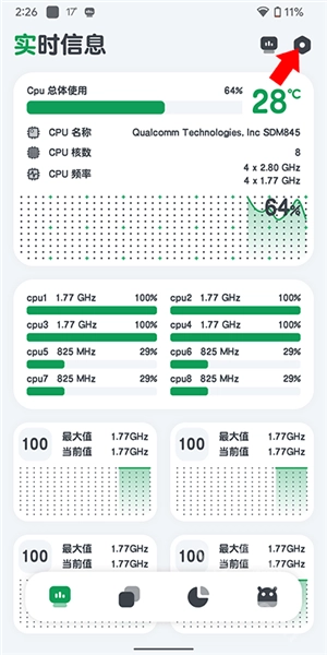 CPU监测凭借简洁的界面设计与丰富实用的功能,收获了众多用户的青睐。这款软件内存占用低,运行流畅迅速,使用过程中不会对手机造成任何不良影响。