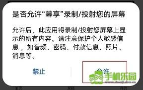 系统会弹出一个询问“是否允许幕享录制或投射您的屏幕”的提示窗口,此时需要点击“允许”按钮。