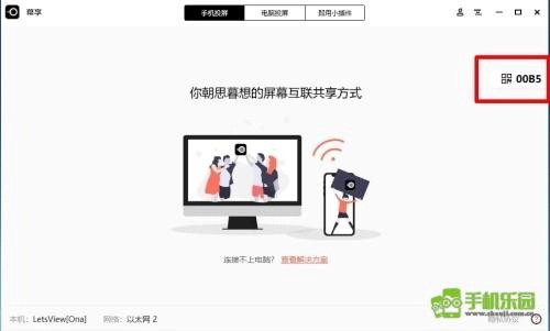 把手机和电脑连到同一个WiFi上,要是你不确定它们是不是在同一个WiFi网络里,可以参考这个方法检测一下。打开电脑上的幕享,点击屏幕右侧隐藏的投屏码界面,找到电脑显示的投屏码。