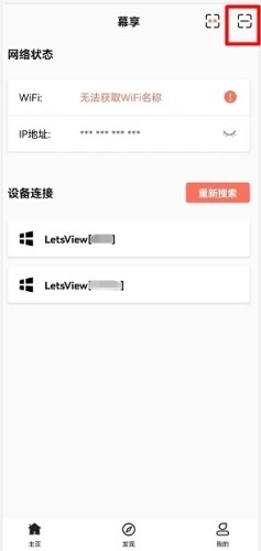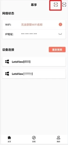 在手机上启动幕享App,找到右上角的扫码图标并点击,然后用它扫描电脑屏幕上显示的二维码,这样就能把手机画面投屏到电脑上了。