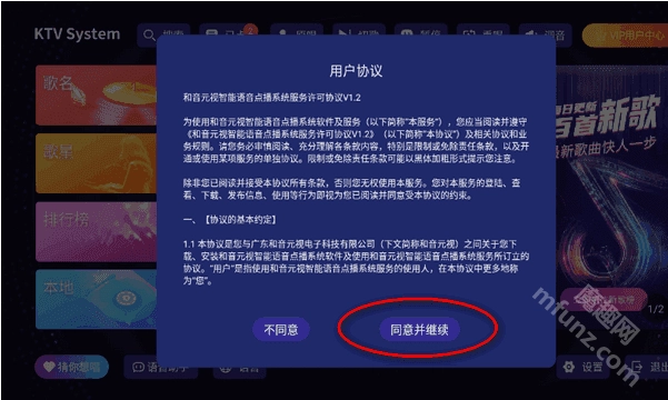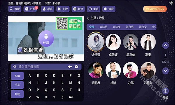 先在本魔趣网(m.mfunz.com)最新版本的想唱就唱ktv软件安装到手机上或者是电视上。