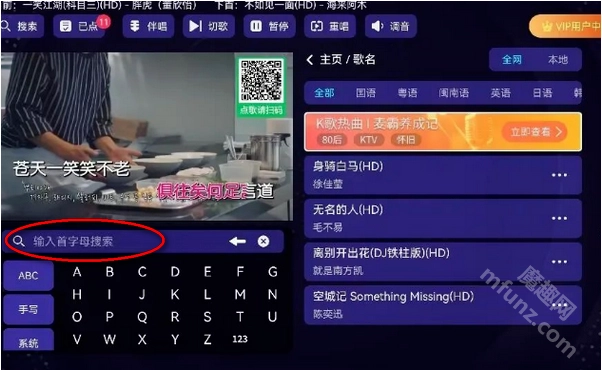 搜索歌曲时只需输入首字母就能找到对应的歌曲,操作方式和KTV基本一致。