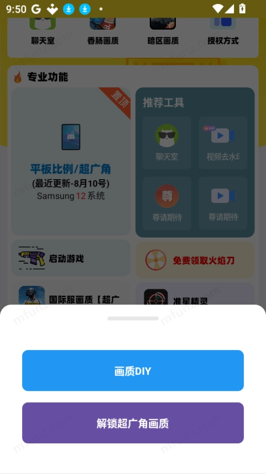 明帝美化助手的和平精英美化区具备多种便捷功能,包括一键获取最新美化包、一键开启美化效果、一键移除美化状态、查看美化配料表以及一键开启美化悬浮窗。而和平精英超广角区则支持一键获取超广角文件、一键开启超广角功能和一键移除超广角设置等操作。