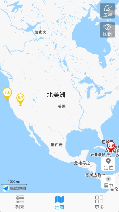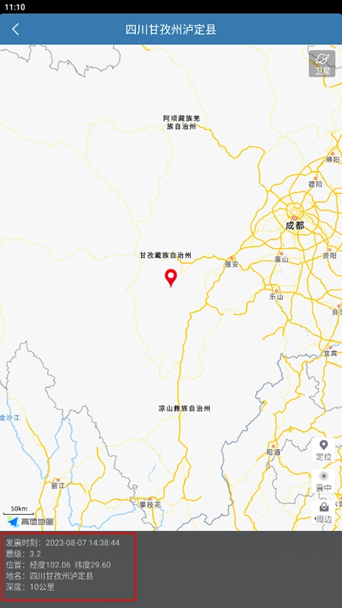 点击“卫星”选项后,我们也能实时查看地震相关的状况。