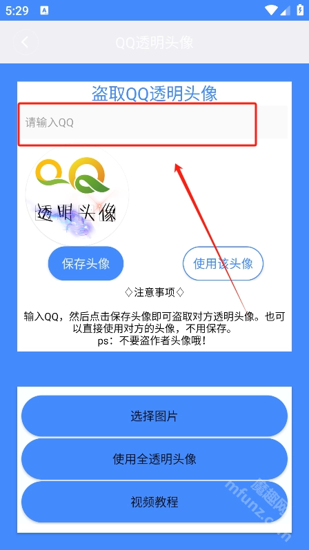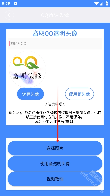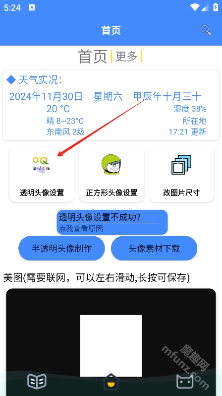 首先在魔趣网(m.mfunz.com)下载并安装透明头像助手软件。