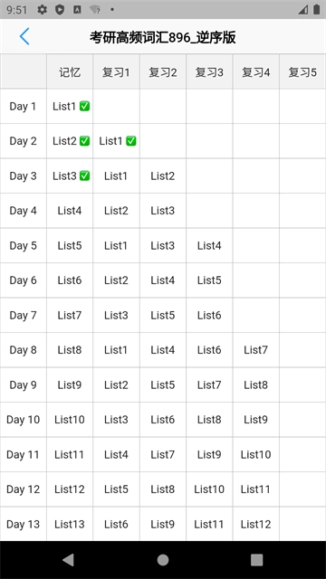 通过调整List的总数,将单词词库进行平分,从而得出平均词汇量和总天数,再选择乱序或正序的版本,就能生成一份学习计划表。
