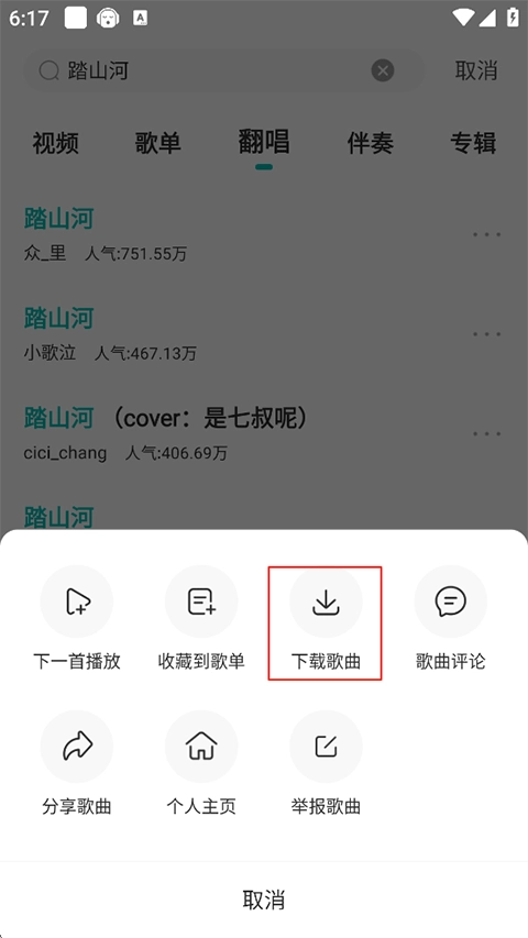 点击歌曲右侧的扩展按钮,点击歌曲。