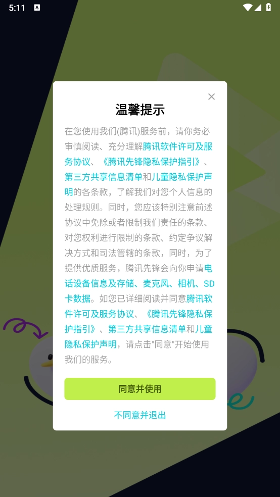 安装本站提供的腾讯先锋应用,打开软件后需同意用户协议才能继续使用。
