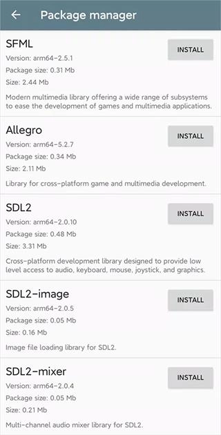 还提供SDL2、SFML*以及Allegro*等图形库。