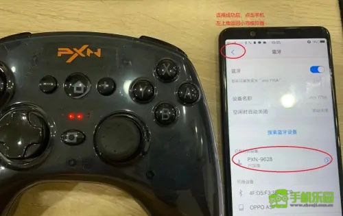 连接成功后,可在“已连接的设备”中查看连接成功的手柄型号:pxn-9628,随后点击左上角返回小鸡模拟器。