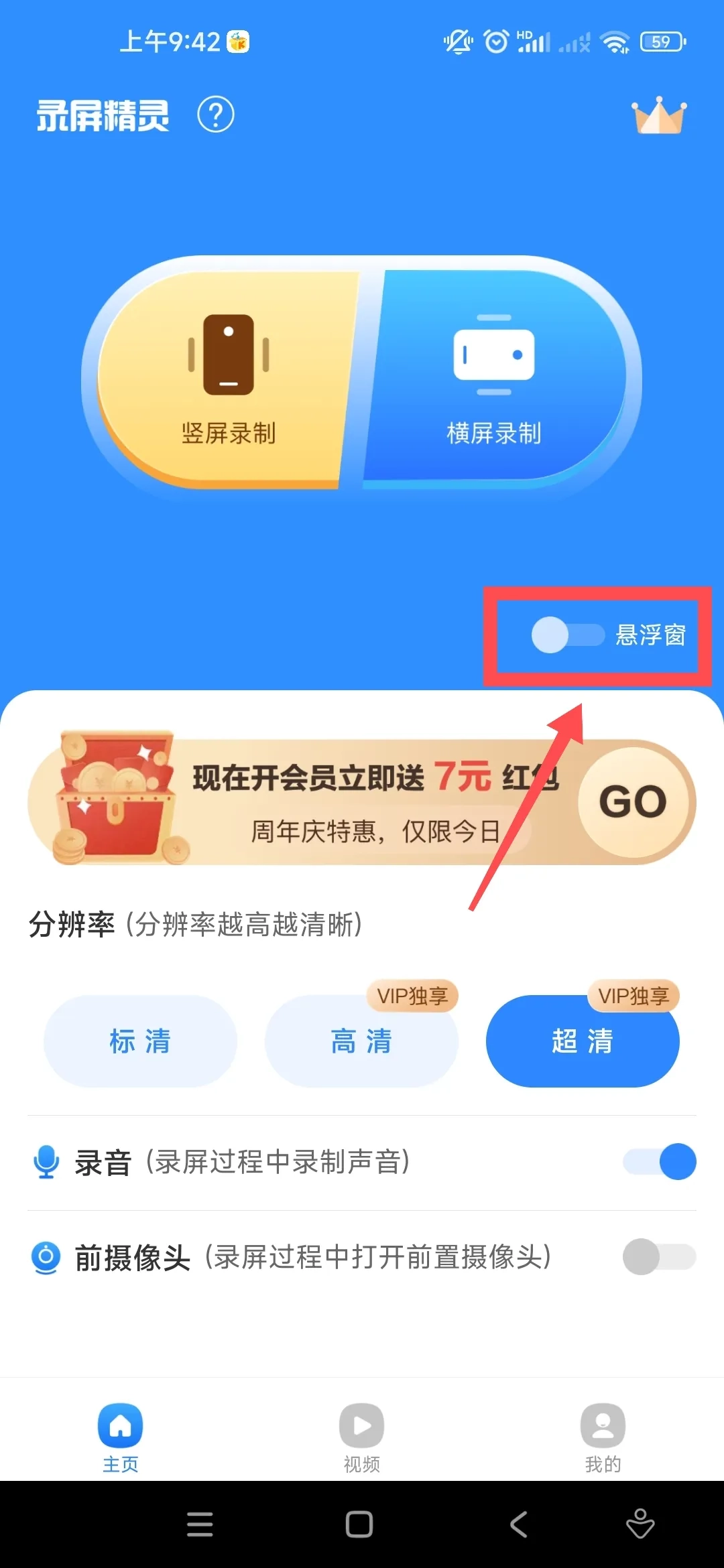 录制时能借助悬浮窗操控开始与停止,录制结束后视频会显示在视频列表里。