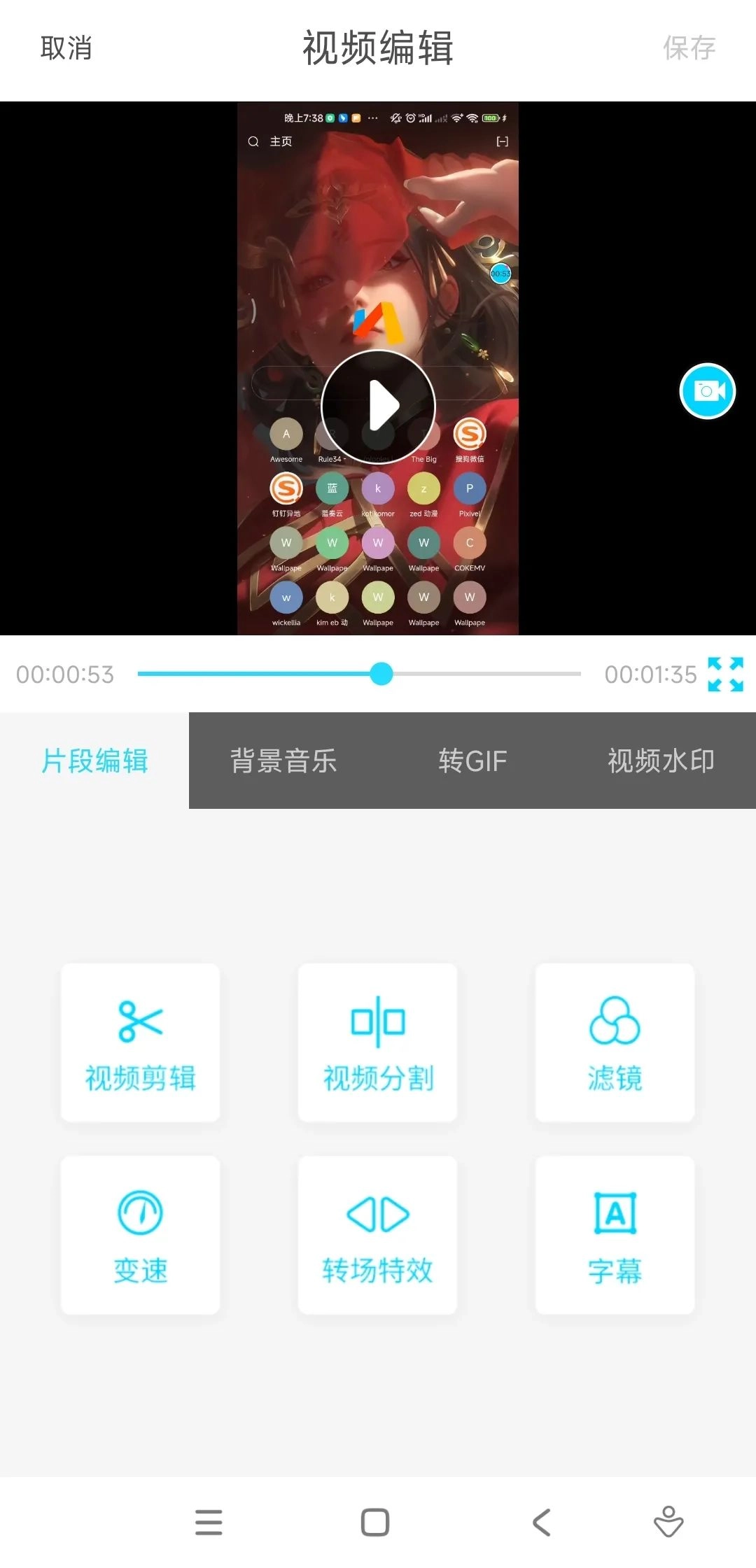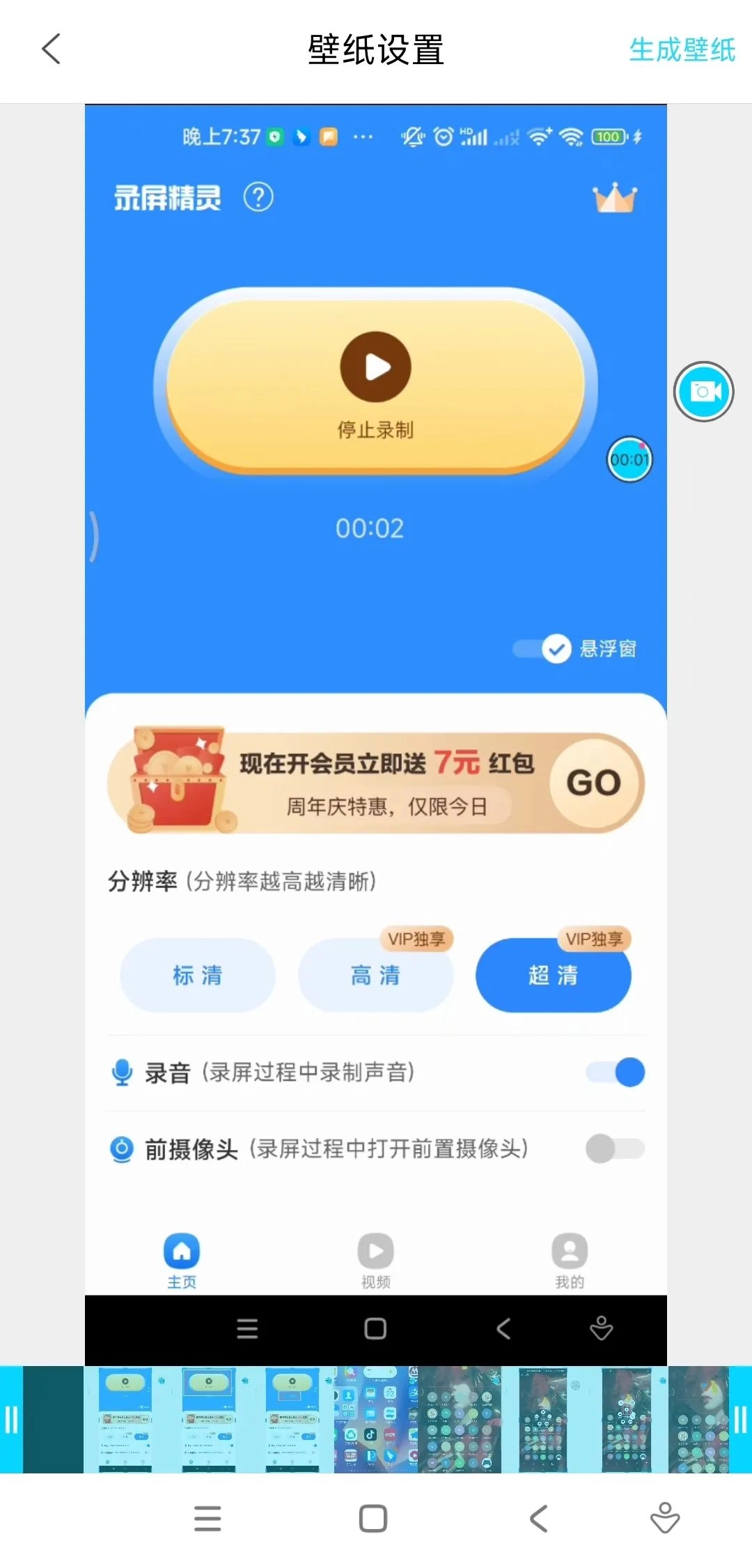 点击风车样式的图标可以将视频生成为视频壁纸。