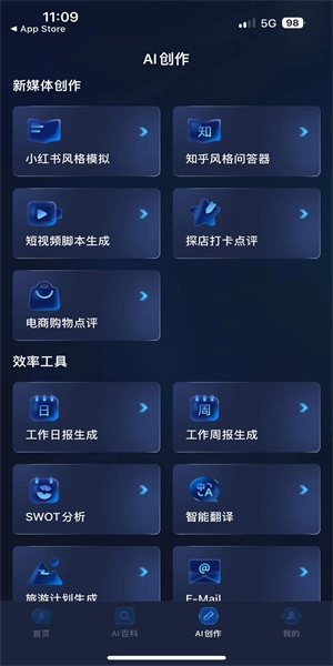 AI写作:依据设定的条件,能智能产出适配各类场景的优质内容。